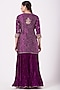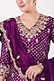 Featuring a purple kurta in pure cora silk base with hand embroidery and bandhani work. It is paired with matching crushed cora silk skirt and a dupatta.