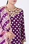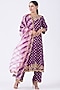 Featuring a purple kurta in pure spun silk base with hand embroidery and bandhej print. It is paired with matching pants and a pure organza dupatta.