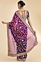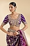 Featuring a purple and magenta saree in organza base with marori, cutdana, gota and pearl work. It is paired with a blouse. Accentuate the designer saree with silver jewellery and embellished heels for a wedding, sangeet or engagement ceremony.