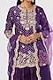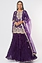 Featuring a purple kurta in spun silk bandhej base with hand embroidery. It is paired with a matching pure cora silk crushed skirt and a pure organza scalloped dupatta.