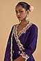 Featuring a purple angrakha kurta in pure spun silk base with thread hand embroidery. It is paired with spun silk pants and a pure organza scalloped dupatta. Style it with dangler earrings and heels for weddings or festive occasions.