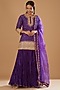 Featuring a purple bandhej kurta in pure spun silk base with gota and marodi embroidery. It is paired with a matching silk crush skirt and an organza embroidered dupatta.