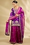 Featuring a purple kurta in spun organza base with gota and lappa work. It is paired with sharara pants and a dupatta. Accentuate it with statement earrings and block heels for a festive occasion or wedding ceremony.