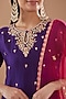 Featuring a purple kurta in pure spun silk base with hand embroidery. It is paired with matching pants and a pure organza dupatta.