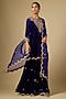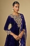 Featuring a purple kurta in velvet base with zardosi and marori work. It is paired with embroidered sharara pants and a dupatta. Accentuate it with statement earrings and heels for any festive occasion or wedding ceremony.
