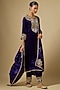 Featuring a purple kurta in velvet base with zardosi work. It is paired with pants and a dupatta. Accentuate it with statement earrings and heels for any festive occasion or wedding ceremony.