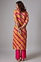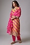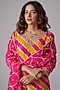 Featuring a rani pink and mustard leheriya kurta in pure spun silk base with gota patti and marodi hand embroidery. It is paired with matching spun silk pants and a pure organza scalloped dupatta.