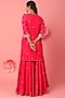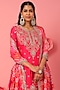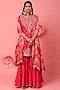 Featuring a rani pink kurta in pure spun silk base with hand embroidery. It is paired with matching sharara pants and a pure gajji silk bandhej dupatta.