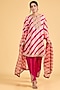 Featuring a red old rose-colored kurta in leheriya spun base. It is paired with pure silk salwar pants and a dupatta. Accentuate with kundan stud earrings, a potli bag and heels for a festive occasion, pooja or sangeet ceremonies.