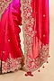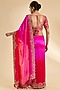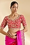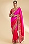 Featuring a red and rani pink magenta saree in kora silk base with marori work. It is paired with a blouse. Accentuate it with statement earrings and heels for festive occasions, engagement or sangeet ceremony.