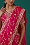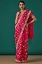 Featuring a red saree in satin organza base with anchor, zardosi, gota and marodi hand embroidery. It is paired with a matching pure spun silk blouse. Accentuate it with statement jewellery and heels for weddings or festive occasions.