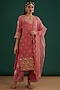 Featuring a rose gold kurta in pure velvet base with zardosi hand embroidery. It is paired with matching pants and a pure organza dupatta.