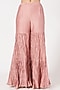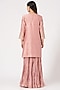 Featuring a rose gold kurta in pure chanderi base with hand embroidery. It is paired with matching sharara pants and a pure organza scalloped dupatta.