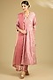 Rose Gold Spun Silk Sequins Work Angrakha Anarkali Set