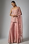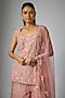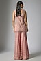 Featuring a rose pink kurta in organza and net base with floral jaal work. It is paired with sharara pants and a dupatta. Style it with jhumkas and embellished juttis for a refined ethnic look. Perfect for festive celebrations or weddings.