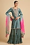 Featuring a sea blue kurta in chanderi base with embroidery. It is paired with pants and a dupatta. Accentuate it with statement earrings and elegant heels for a stylish ensemble, ideal for festive gatherings, sangeet or refined celebrations.