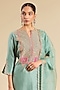 Featuring a sea blue kurta in chanderi base with marori and patchwork. It is paired with pants and a dupatta. Accentuate it with zircon dangler earrings, a clutch and block heels for festive occasion, sangeet or cocktail ceremony.