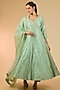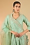 Featuring a sea green angrakha kurta in spun silk base, adorned with pearl and marori work. It is paired with pants and a dupatta. Style the designer kurta set with statement earrings and wedges for festive gatherings or sangeet celebrations.