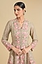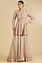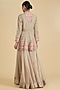 Featuring a silver peplum in organza base with 3D floral jaal work. It is paired with a bustier and pants. Accentuate it with statement earrings and heels for a festive look.