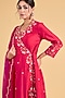 Featuring a strawberry red anarkali in spun silk base. It is paired with pants and a dupatta. Accentuate with kundan stud earrings, a potli bag and heels for a festive occasion, pooja or sangeet ceremonies.