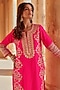 Strawberry Red Spun Silk Marori Work Kurta Set