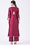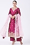 Featuring a wine kurta in pure spun silk base with hand embroidery. It is paired with matching pants and a pure organza dupatta.