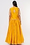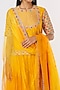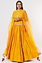 Featuring a yellow lehenga in pure chanderi base with hand embroidery. It is paired with a matching kurti and a pure organza scalloped dupatta.