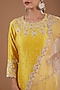 Featuring a yellow kurta in pure spun silk base with gota and marori work. It is paired with pants and a contrasting ivory dupatta. Accentuate it with statement jewellery and heels for a wedding or haldi ceremony.