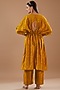 Featuring a mustard bandhej kaftan in pure spun silk base with hand embroidery. It is paired with matching pants.