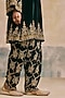 Featuring a bottle green short kurta in silk velvet base with embroidery. It is paired with salwar pants and a dupatta. Style it with a bold lip and a potli bag for festive nights, mehendi or wedding functions.