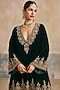 Bottle Green Silk Velvet Embroidered Short Kurta Set