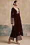 Burgundy Silk Velvet Embroidered Asymmetrical Kurta Set