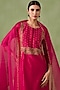 Sureena Chowdhri presents a crimson magenta kurta in silk chanderi base with thread, sitara and beadwork. It is paired with palazzo pants having scalloped organza panels and an organza dupatta. Accentuate it with dangler earrings and heels for a pooja ceremony and festive occasion.