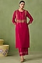 Crimson Magenta Silk Chanderi Beadwork Kurta Set