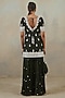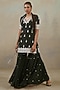 Featuring an ebony black kurta in silk chanderi base with gota patti, pearl, gota, and thread embroidery. It is paired with georgette gharara pants and an organza dupatta. Style it with statement earrings and juttis for festive occasions.