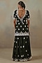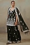 Featuring an ebony kurta in silk chanderi base with thread, mirror, and aari embellishments. It is paired with embroidered gharara pants and an organza dupatta having thread and mirror work. Style it with statement earrings and juttis for festive occasions.
