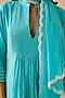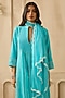 Featuring a firozi kurta in silk chanderi base with pearl embroidery. It is paired with wide palazzo pants and an organza embroidered dupatta. Accentuate it with dangler earrings and heels for a festive occasion or pooja ceremony.