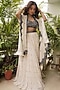 Featuring an ivory lehenga in georgette base. It is paired with a silk chanderi embroidered bustier blouse and a georgette scalloped dupatta. Style it with pearl earrings and block heels for wedding ceremonies.