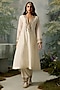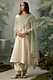 Featuring an ivory kurta in silk chanderi base with aari thread work, zari, bead and sitara hand embroidery. It is paired with salwar pants and a sea green organza scalloped dupatta. Accentuate it with embellished juttis and delicate jewellery for a graceful yet contemporary look, perfect for festive celebrations, family functions or cultural events.