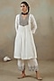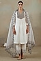 Featuring an ivory kurta in silk chanderi base with thread lines and pintucks detailing. It is paired with pants having thread embroidery and an organza dupatta. Style it with statement earrings and juttis for festive occasions.