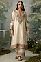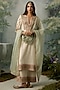Featuring an ivory straight kurta in silk chanderi base with zardosi hand embroidery. It is paired with pants and an organza embroidered dupatta. Accentuate it with embellished juttis and delicate jewellery for a graceful yet contemporary look, perfect for festive celebrations, family functions or cultural events.