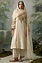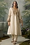 Featuring an ivory kalidar kurta in silk chanderi base with aari, zardosi, sitara and cutdana work. It is paired with pants and an organza embellished dupatta. Accentuate it with embellished juttis and delicate jewellery for a graceful yet contemporary look, perfect for festive celebrations, family functions or cultural events.