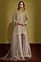 Featuring a lilac gold kurta in tissue silk base with handwork. It is paired with gharara pants and a net dupatta. Style it with heavy jewellery, a sleek clutch, and strappy heels for festive occasions or wedding ceremonies.