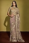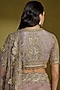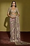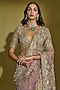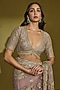 Featuring a lilac saree in net base with kiran dori, gota and floral embroidery. It is paired with a silk tissue blouse. Style it with heavy jewellery, a sleek clutch, and strappy heels for a cocktail, sangeet or reception look.