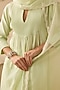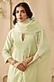 Featuring a mint green kurta in silk chanderi base with pearl embroidery. It is paired with wide palazzo pants and an organza embroidered dupatta. Accentuate it with dangler earrings and heels for a festive occasion or pooja ceremony.