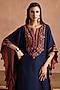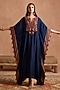 Featuring a navy blue kaftan in muslin base with thread and applique patchwork, side seam and tassel detailing. Accentuate it with strappy sandals and chunk jewellery for a stylish yet comfortable look.