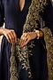 Featuring a navy blue kurta in silk chanderi base with zari embroidery. It is paired with wide pants and an organza dupatta. Accentuate it with dangler earrings and heels for a festive occasion or pooja ceremony.
