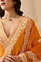 Featuring an orange high-low asymmetric kurta in silk chanderi base with dori, aari, pearl, sequins and beads embroidery. It is paired with pants and an organza embroidered dupatta. Accentuate it with dangler earrings and heels for a festive occasion or pooja ceremony.