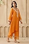 Orange Silk Chanderi Pearl & Sequin Embroidered Asymmetric Kurta Set