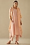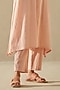 Featuring a peach asymmetrical cape in tissue base. It is paired with a cotton kurta and pants. Accessorise with dangler earrings and heels.